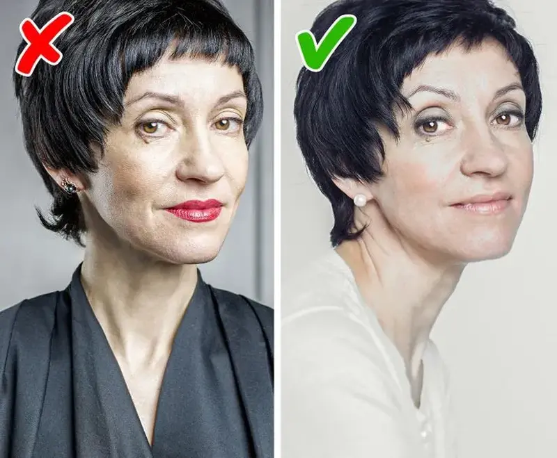 Một số người cố gắng che đậy dấu vết tuổi tác bằng một chiếc cao cổ. Tuy nhiên, thực tế cho thấy rằng áo với đường viền cổ mở và rộng rãi lại giúp bạn trông tươi trẻ và quyến rũ hơn. Hãy thử mang áo len, áo khoác hoặc váy liền có cổ chữ V.