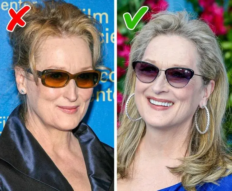 Ví dụ như, một đôi kính mắt mèo có thể “che khéo” phần góc mắt bên ngoài bị chảy xệ, từ đó giúp bạn trẻ trung thêm nhiều phần.