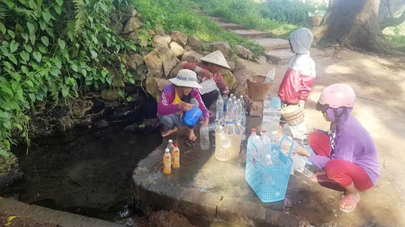 | Người dân lấy nước ở bến nước Kbăng Kiêu. |