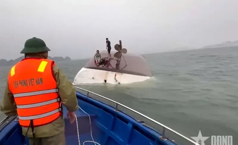 Chiều 19/7, tàu QN 7105 trong quá trình di chuyển tham quan ở tuyến 2, trên Vịnh Hạ Long (tỉnh Quảng Ninh), do giông lốc bất ngờ không may bị lật.
