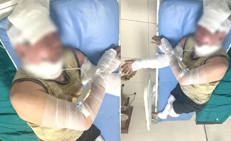 Sau khi thăm khám, các bác sĩ khi nhận định người bệnh tổn thương bỏng độ 1-2, diện tích khoảng 30% vùng mặt cổ ngực, tay 2 bên, gối 2 bên, cẳng chân 2 bên vùng mặt mũi, cháy một phần tóc và lông mày.