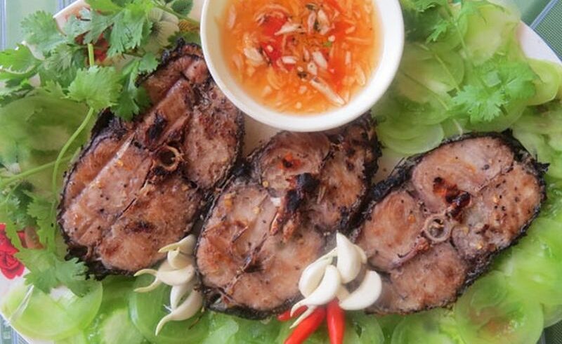 Cá cờ nướng lá chuối giữ vị ngọt của cá và được ướp hương thơm từ lá chuối cháy sém tạo nên hương vị đặc trưng của nó.