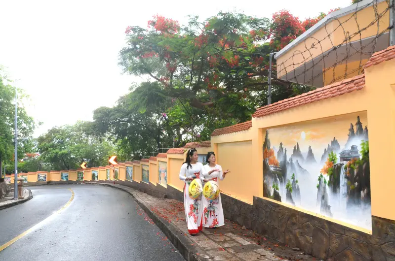 Gần đây, đoạn bờ tường ven đường lên Núi Nhỏ (đoạn ở Tịnh xá Ngọc Hương, 17 Hải Đăng, phường 2, TP.Vũng Tàu) nổi bật với những bức tranh được vẽ công phu, đẹp mắt, thu hút nhiều người dân và du khách đến ngắm cảnh, chụp hình lưu niệm.