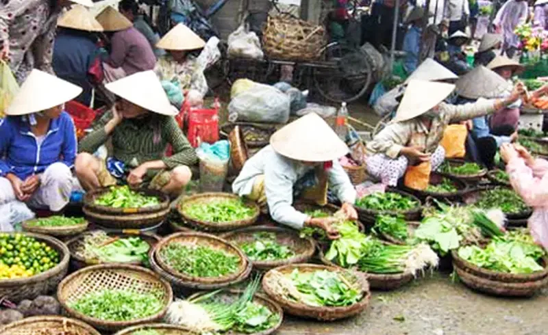 Chợ phiên mỗi tháng họp vài lần nên mẹ chọn hàng rất kỹ, thế nên mỗi lần được đi chợ cùng mẹ, tôi tha hồ chạy lăng xăng khắp chợ để ngắm nhìn cho thỏa thích. Loanh quanh cũng chỉ mấy hàng cua cá, rau quả, hàng bún bánh, cuốc xẻng… bày ngổn ngang trên những sạp tre, thúng mẹt.