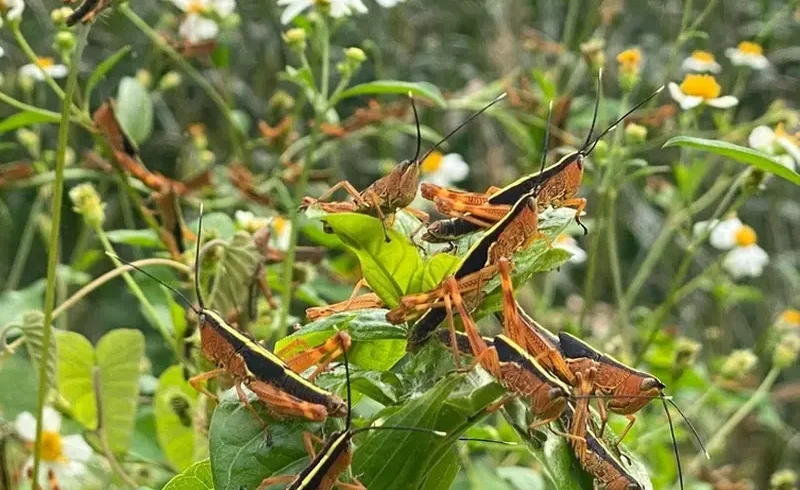 Thời tiết từ đầu năm 2025 cũng góp phần thúc đẩy sự phát triển của châu chấu. Nhiệt độ trung bình tại các khu vực trung du và miền núi phía Bắc thấp hơn nhiều năm (giảm 0,5-1°C), kèm theo mưa nhỏ và mưa phùn kéo dài. Tuy nhiên, từ giữa tháng 5/2025, nắng nóng gay gắt quay trở lại, tạo điều kiện cho châu chấu phát sinh sớm hơn so với các năm trước.