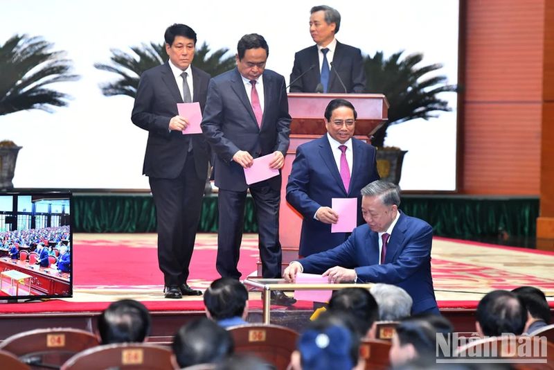 Đồng chí Tổng Bí thư Tô Lâm đã có bài phát biểu khẳng định kế thừa và phát huy những thành quả cách mạng mà đồng chí cố Tổng Bí thư Nguyễn Phú Trọng và các thế hệ lãnh đạo đi trước đã gây dựng; duy trì sự đoàn kết, thống nhất và cùng tập thể Ban Chấp hành Trung ương Đảng, Bộ Chính trị, Ban Bí thư quyết tâm lãnh đạo, chỉ đạo toàn Đảng, toàn dân, toàn quân ta thực hiện thắng lợi các mục tiêu, nhiệm vụ Đại hội Đảng toàn quốc lần thứ XIII đã đề ra, tổ chức thành công Đại hội XIV, đưa đất nước vững bước phát triển trong giai đoạn mới.