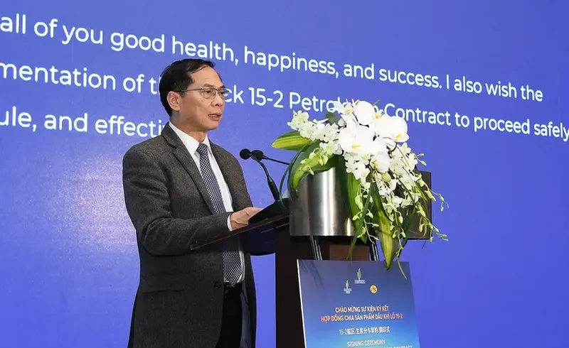 Phát biểu tại buổi lễ, Phó Thủ tướng Bùi Thanh Sơn chúc mừng Công nghiệp năng lượng quốc gia (PetroVietnam) cùng tổ hợp các nhà thầu và các đối tác về cột mốc hợp tác quan trọng này.