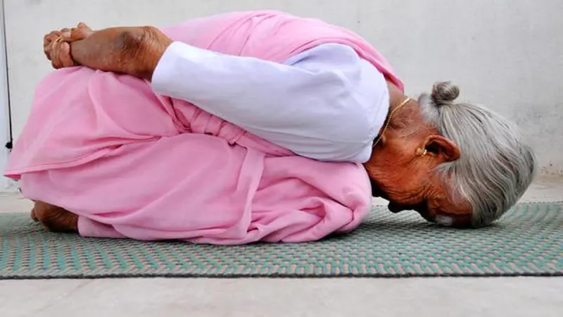 Cụ bà Nanammal, Ấn Độ thường dậy vào lúc 5h sáng để luyện tập yoga, dù đã 98 tuổi nhưng bà vẫn khỏe mạnh.