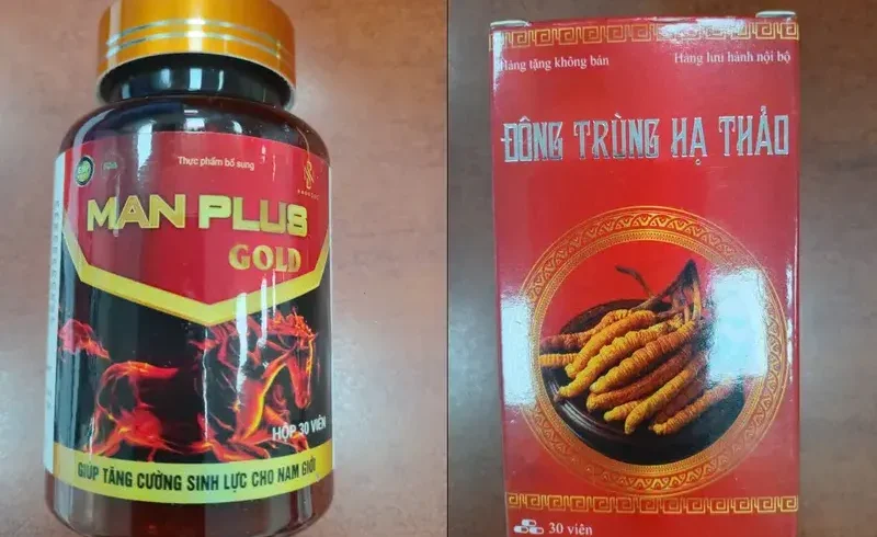 Thực phẩm bổ sung Man Plus Gold (hộp 30 viên, số lô: 040325; ngày sản xuất: 4/3/2025; hạn sử dụng: 4/3/2028) có hàm lượng Sildenafil: 4,21 mg/kg; hàm lượng Tadalafil: 1,18 mg/kg.