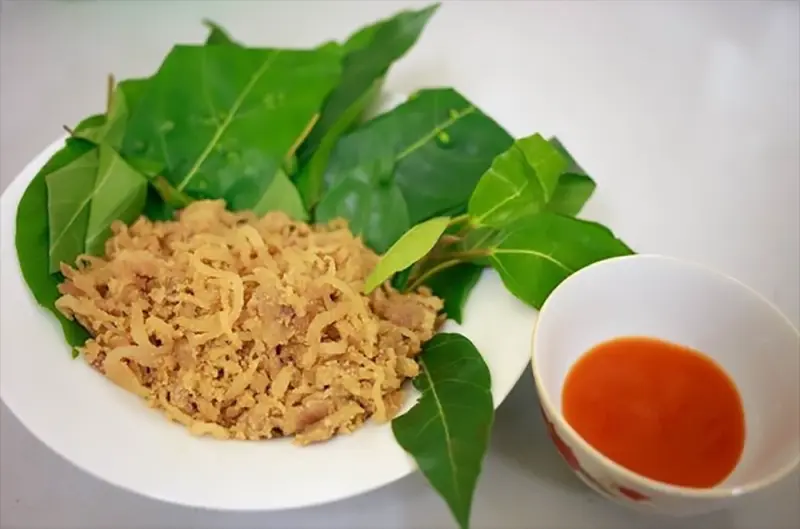 Nem Bùi có thể ăn kèm lá sung hoặc lá đinh lăng, chấm với tương ớt hoặc nước mắm chua ngọt. Khi thưởng thức, thực khách sẽ cảm nhận vị chát dịu của lá, vị ngọt của thịt, và mùi thơm bùi bùi của thính gạo. Đây là sự kết hợp hài hòa giữa các nguyên liệu dân dã, tạo nên món ăn vừa ngon, vừa thanh mát.
