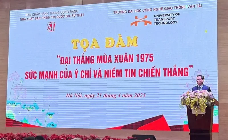 Ngày 21/4, tại Hà Nội, Nhà xuất bản Chính trị quốc gia Sự thật phối hợp cùng Đại học Công nghệ giao thông vận tải tổ chức buổi Tọa đàm với chủ đề: “Đại thắng mùa Xuân 1975 – Sức mạnh của ý chí và niềm tin chiến thắng” nhân kỷ niệm 50 năm Ngày Giải phóng miền Nam, thống nhất đất nước (30/4/1975 – 30/4/2025).