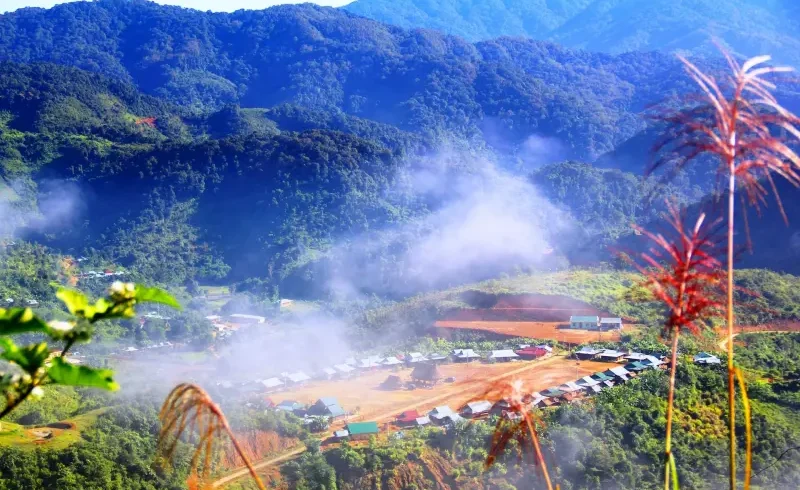 Những ngôi làng vùng cao hiện trong sương trắng. Trên đỉnh núi A Xan mờ ảo, làng A Râng lung linh giữa không gian rộng thoáng. Nền trời phủ dày sương trong, một vòng cung khép kín với điểm giữa là gươl dần hiện ra, làng người Cơ Tu đẹp lạ trong ánh nhìn của du khách.