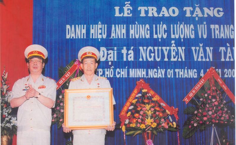 * Hình bìa: Ông Tư Cang (phải) trong lần nhận danh hiệu Anh hùng LLVTND