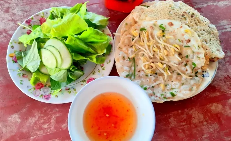 | Bánh xèo vịt dân dã mà thơm ngon. |