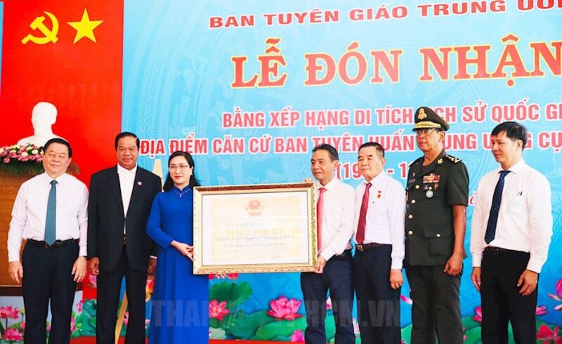 Sáng 24/7, Ban Tuyên giáo Trung ương phối hợp Bộ Văn hóa, Thể thao và Du lịch; Tỉnh ủy tỉnh Tây Ninh tổ chức Lễ đón nhận bằng xếp hạng Di tích lịch sử quốc gia Ban Tuyên huấn Trung ương Cục miền Nam (1962 – 1975), nhân kỷ niệm 94 năm Ngày Truyền thống ngành Tuyên giáo của Đảng (1/8/1930 – 1/8/2024).