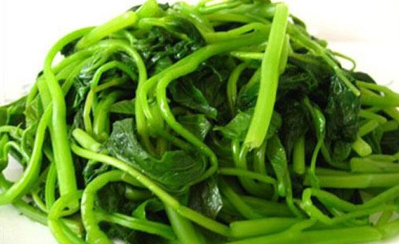 Tôi cầm rổ chạy ra vườn, chọn những chiếc đọt lang bụ bẫm, mơn mởn, thoăn thoắt một lát thì đã có một rổ rau đủ cho bữa chiều. Ngâm vào nước cho ra bớt mủ và rửa sạch.
