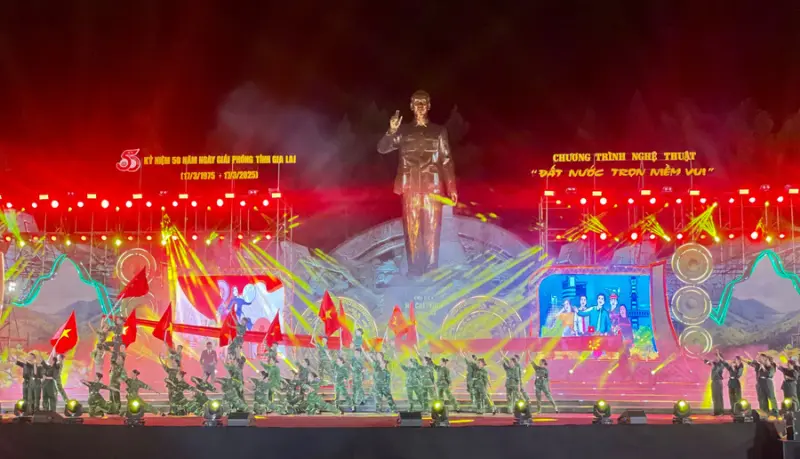 17-3, tại Quảng trường Đại Đoàn Kết (TP. Pleiku), tỉnh Gia Lai tổ chức chương trình nghệ thuật chào mừng kỷ niệm 50 năm Ngày giải phóng tỉnh với chủ đề “Đất nước trọn niềm vui”.