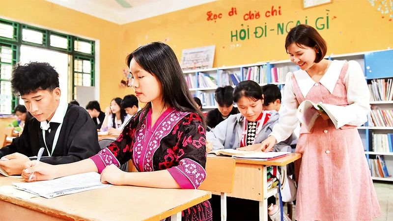 - Hình bìa: Cô và trò Trường Dân tộc nội trú tỉnh Ðiện Biên. (Ảnh MỸ HÀ)