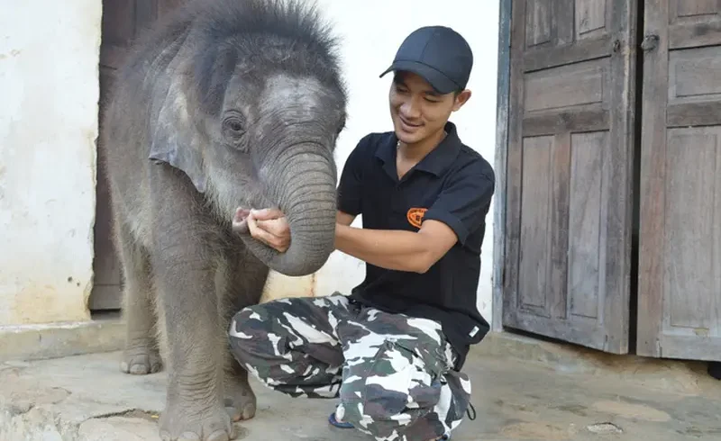 | Chú voi con được đặt tên Gold được chăm sóc chu đáo tại Trung tâm Bảo tồn voi Đắk Lắk. Ảnh: Công Hạnh |
