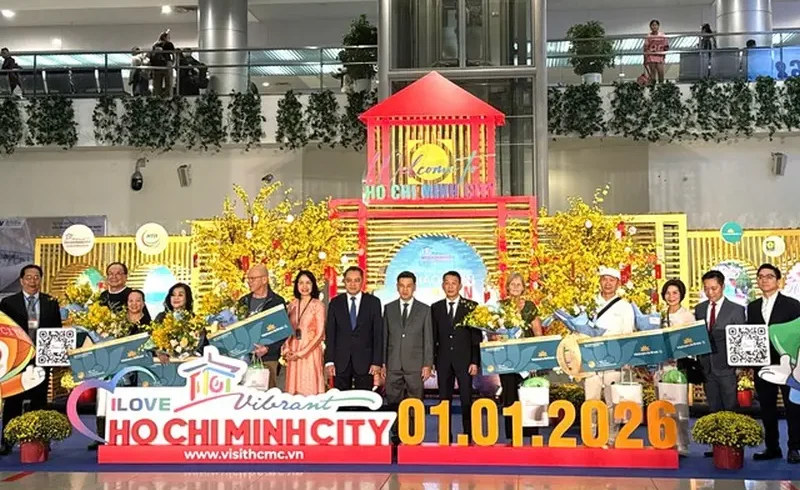 Sáng 1/1 tại Cảng hàng không quốc tế Tân Sơn Nhất, Sở Du lịch TPHCM tổ chức “Lễ đón đoàn khách du lịch đến TPHCM đầu năm 2026. Sự kiện mở đầu cho chuỗi hoạt động quảng bá điểm đến an toàn, thân thiện và sống động của TPHCM trong năm nay.