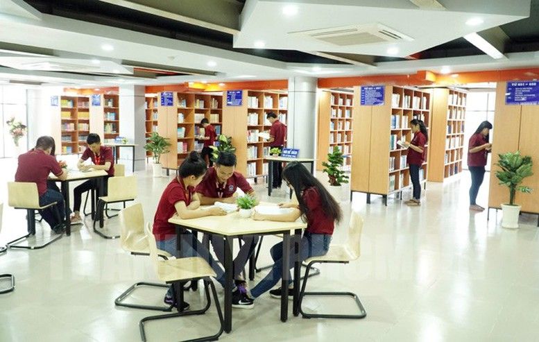 Không gian đọc của thư viện được thiết kế theo phong cách thư viện hiện đại – tạo không gian mở, giúp truyền cảm hứng sáng tạo cho sinh viên khi đến đây học tập và trải nghiệm.