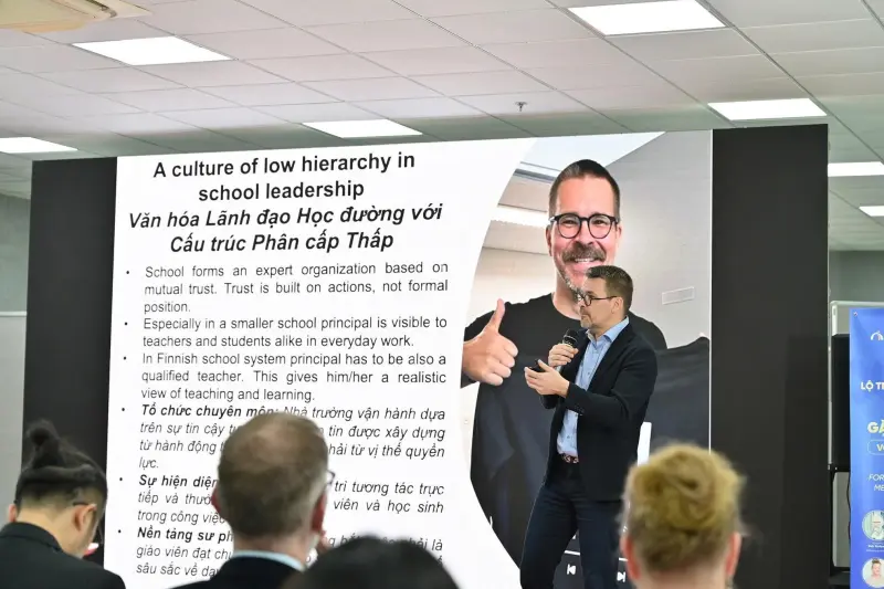 Tại phiên thảo luận dành cho các nhà lãnh đạo giáo dục, các chuyên gia đến từ Phần Lan đã chia sẻ về tư duy quản trị trường học, đó không đơn thuần là vận hành bộ máy, mà còn là nghệ thuật lãnh đạo tạo ra sự tự chủ, dựa trên giá trị cốt lõi là niềm tin.