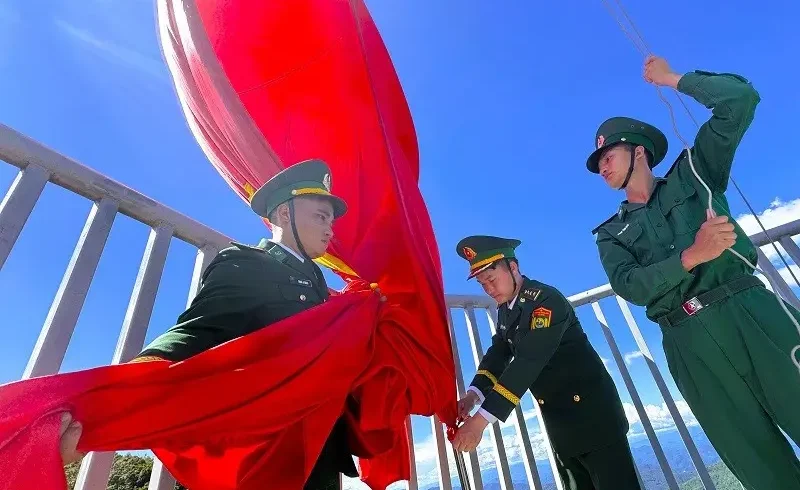 Hướng về Ngày đại lễ của dân tộc, sáng sớm 2/9, ở biên giới cực Tây Tổ quốc, cán bộ, chiến sĩ Đồn Biên phòng A Pa Chải cùng bà con nhân dân các dân tộc trên địa bàn xã biên giới Sín Thầu (tỉnh Điện Biên) đã thực hiện nghi thức chào cờ tại Cột cờ A Pa Chải.