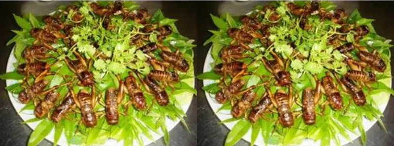 Đi bắt chừng nửa tiếng là đã có hai xâu dế dài. Mẹ ở nhà vá lại quần áo của ba và chị em tôi, thấy 2 cha con về nhà với 2 xâu dế dài trên tay, mẹ mỉm cười, vội vàng xuống bếp. Bữa cơm chiều hôm ấy có thêm món dế xào rất tuyệt. Dế bắt về bỏ cánh, bỏ chân (chỉ để lại hai bắp đùi sau), rồi làm ruột. Mẹ bỏ dế vào chảo đã phi dầu sẵn, cho thêm ít ớt và gia vị, xào lên thơm “nức mũi”. Ngày lụt, khan hiếm thức ăn, những luống rau, hàng khoai (thu nhập chính của gia đình tôi hồi ấy) cũng theo con nước mà héo úa chết đi, bởi vậy, một chảo dế xào bốc khói nghi ngút, là niềm vui, sự cứu cánh của các gia đình tôi. Ba mẹ mỉm cười khi thấy những đứa con của mình không phải đói…