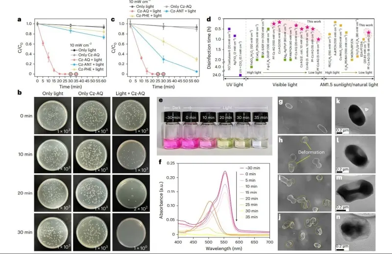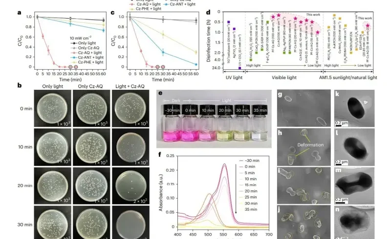 Đáng chú ý hơn, trong khi các vật liệu quang xúc tác thông thường như TiO₂ chỉ hoạt động khi có ánh nắng mạnh, màng Cz-AQ lại duy trì khả năng diệt khuẩn ngay cả trong điều kiện ánh sáng yếu nhờ việc các gốc oxy tồn tại lâu hơn hàng triệu lần so với thông thường.