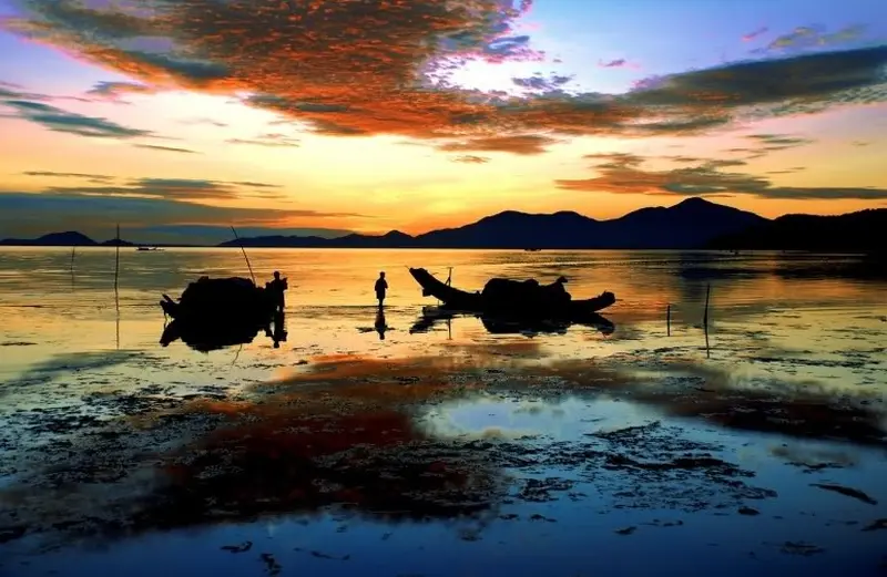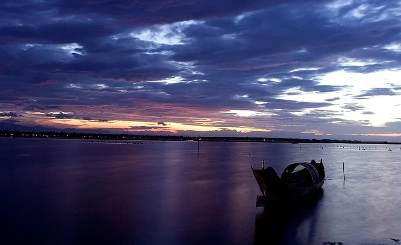 Vừa thưởng thức hải sản vừa hưởng thụ bầu không khí trong trẻo trên những chiếc chòi lá dựng sát mép nước. Chiều đầm phá lộng gió vẫn ngày ngày thổi qua cuộc sống thanh bình của những ngư dân quanh năm chỉ biết đến thả lưới giăng câu… Đầm phá đẹp và lãng mạn nhất trong khoảnh khắc khoác lên mình màu áo của ánh chiều tà. Cả bầu trời mây tím thẫm sà xuống phủ lên mặt đầm rạng rỡ bóng nắng cuối ngày.