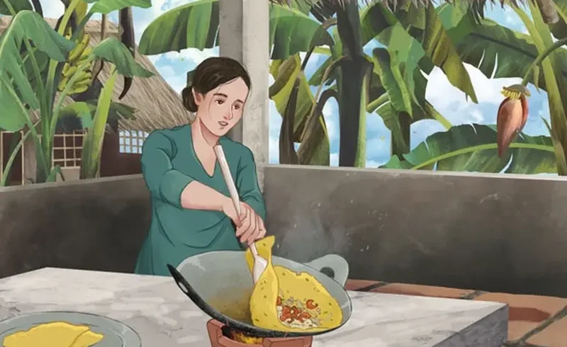 Ở quê tôi, bánh xèo là món ăn rất được ưa chuộng mỗi dịp đông về nên quán bánh xèo của mẹ không phải là quán duy nhất. Nhưng quán mẹ luôn là một trong những quán đông khách nhất. Ở đó rất dễ nhầm lẫn cái cảm giác như đang ăn ở nhà, không chỉ được phục vụ tận tình mà thiếu gì đều có thể tự đi lấy hoặc xin thêm. Mỗi khi đảo mắt qua gian bếp của mẹ lúc nào cũng bắt gặp nụ cười hiền lành của mẹ cùng câu hỏi “ăn thêm không con?” khiến ai xa quê nghe thật dễ xao lòng. Mỗi khi xa nhà, dạt vào một quán bánh xèo ven đường, tôi luôn có cảm giác thân thuộc vô cùng như có bàn tay của mẹ mình đang lụi cụi tráng bánh, tay thoăn thoắt đổ từng gáo bột, chăm chút cho từng chiếc bánh mang ra.