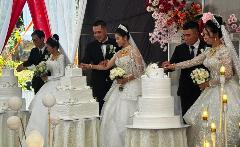 Một gia đình tại TP Bảo Lộc vừa tổ chức đám cưới cho 3 cô con gái trong 1 ngày và cùng 1 tiệc cưới.