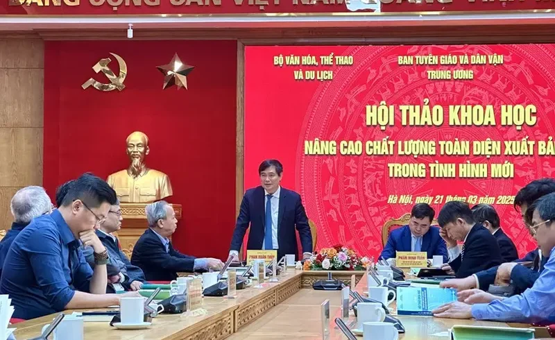 Ngày 21/03/2025, tại Hà Nội, Ban Tuyên giáo và Dân vận Trung ương phối hợp với Bộ Văn hóa, Thể thao và Du lịch, Hội Xuất bản Việt Nam tổ chức Hội thảo khoa học “Nâng cao chất lượng xuất bản phẩm trong tình hình mới”. Hội thảo có ý nghĩa đặc biệt quan trọng nhằm cung cấp cơ sở lý luận, thực tiễn phục vụ việc tổng kết 20 năm thực hiện Chỉ thị 42-CT/TW, ngày 25/8/2004 của Ban Bí thư Trung ương Đảng về “Nâng cao chất lượng toàn diện của hoạt động xuất bản”.