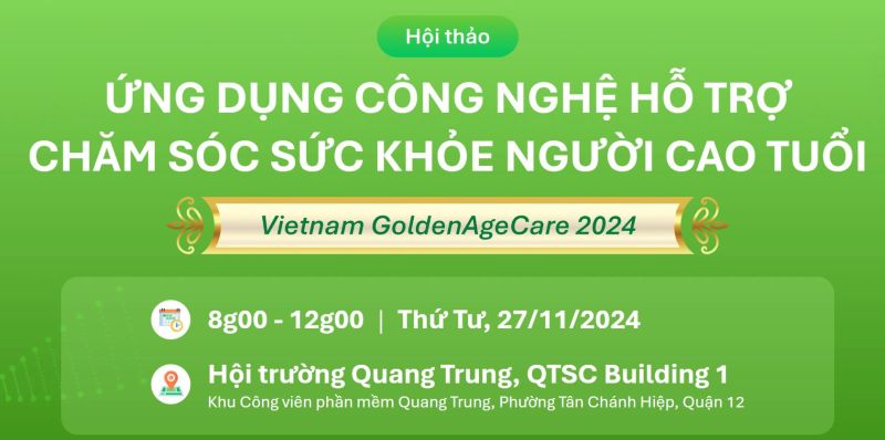 Đây là lần đầu tiên diễn ra Hội thảo và Triển lãm “Ứng dụng công nghệ hỗ trợ chăm sóc sức khỏe người cao tuổi” – Vietnam Golden Age Care 2024 (https://goldenagecare.vn), tại tại Khu Công viên phần mềm Quang Trung trong ngày 27/11/2024 với nội dung chủ đạo xoay quanh chủ đề trí tuệ nhân tạo (AI) và công nghệ giúp theo dõi và chăm sóc sức khỏe cho người cao tuổi và viện dưỡng lão thế hệ mới.