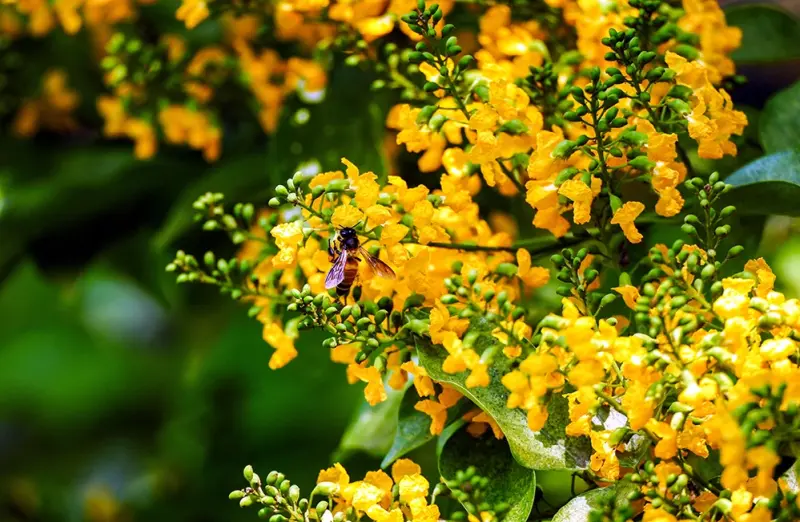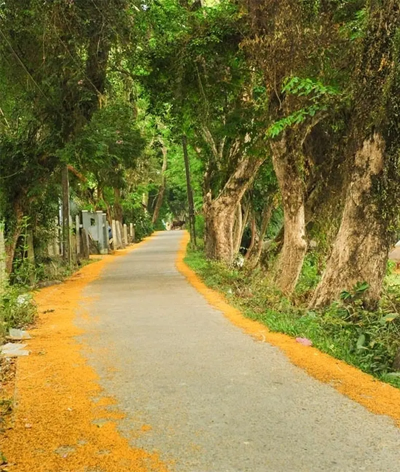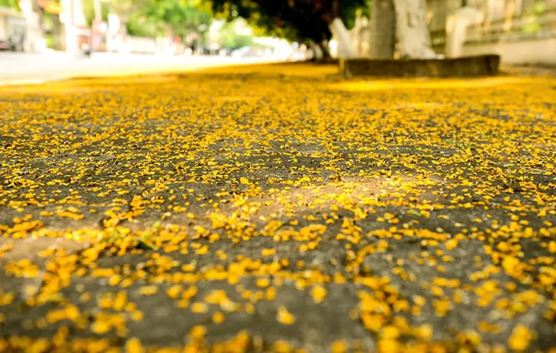 Khoảng 10 năm nay, thành phố Tam Kỳ mang sưa vàng về trồng đại trà trong đô thị, hình thành nên những “con đường sưa” như Phan Bội Châu, Trần Cao Vân, Trần Hưng Đạo… Nhiều khuôn viên cơ quan công sở cũng trồng sưa lấy bóng mát.Cuối mùa xuân, đầu mùa hè là lúc hoa sưa nở rộ. Những chùm hoa vàng rực che khuất cả tán lá, cho mùi thơm dịu nhẹ. Sưa vàng có đặc điểm tán rộng, dễ nhân giống, tăng trưởng nhanh ở các năm đầu. Thân hợp trục phía ngọn, rễ bạnh khó đổ, cành nhánh dẻo và khó gãy, quả không có thịt. Mùa mưa bão, cây rụng hết lá nên khó bị đổ ngã.Hoa nở thu hút nhiều côn trùng đến lấy mật, phấn hoa. Mùa sưa nở, những tuyến phố như thay áo mới với màu vàng đặc trưng. Màu sắc này lưu lại được khoảng 2 tuần rồi lụi tàn.Hoa sưa rụng như tấm thảm trải hai bên đường Trần Hưng Đạo.Sau mỗi đêm, công nhân môi trường đô thị lại miệt mài thu dọn hoa rụng.Không chỉ ở phố thị, các làng quê Quảng Nam những ngày này hoa sưa cũng trải dọc đường làng ngõ xóm.Trên sông Tam Kỳ, những hàng sưa soi bóng xuống lòng sông tạo nên bức tranh đầy màu sắc. Sưa được người dân trồng để bảo vệ đất, chống sạt lở.Những gốc sưa trăm tuổi ở vùng ngoại ô tán đan nhau tạo thành con đường rợp bóng mát.Nhiều bạn trẻ nhân dịp này chụp ảnh lưu lại những khoảnh khắc riêng.