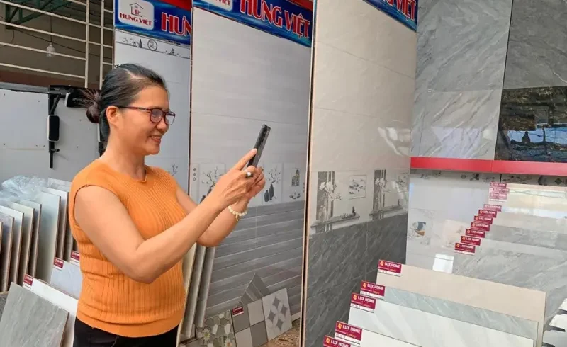 Thế nhưng, được sự động viên và hướng dẫn của các con, ở tuổi ngoài 50, bà bắt đầu học cách sử dụng điện thoại thông minh để livestream trên Facebook, quay các video ngắn giới thiệu gạch ốp lát mới, tư vấn chọn màu sơn, cập nhật giá thị trường, mở gian hàng trực tuyến bán thêm đồ dùng gia đình trên nền tảng TikTok.