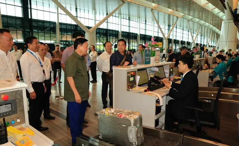 Phó Thủ tướng đã kiểm tra toàn diện các khu vực vận hành chính: Khu vực làm thủ tục hàng không (check-in), soi chiếu an ninh, khu băng chuyền hành lý, khu đón – tiễn khách, phòng chờ và trung tâm điều phối chuyến bay.