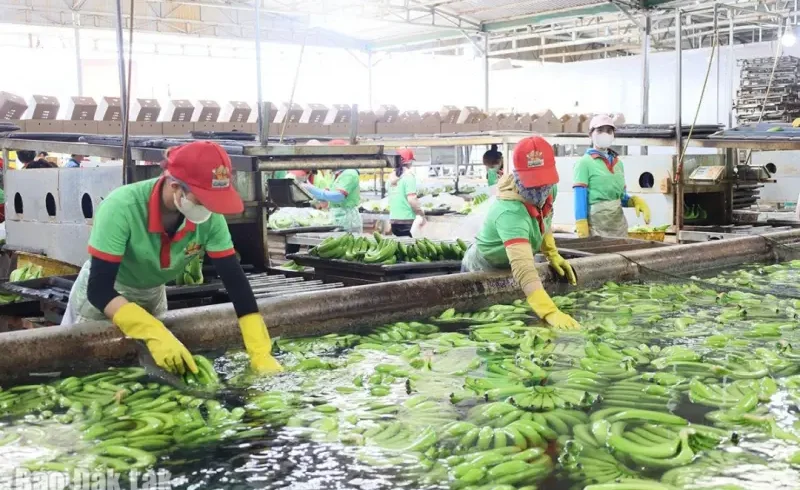 | Quy trình sơ chế chuối tươi trước khi đóng thùng xuất khẩu tại Công ty Cổ phần Banana Brothers Farm. |