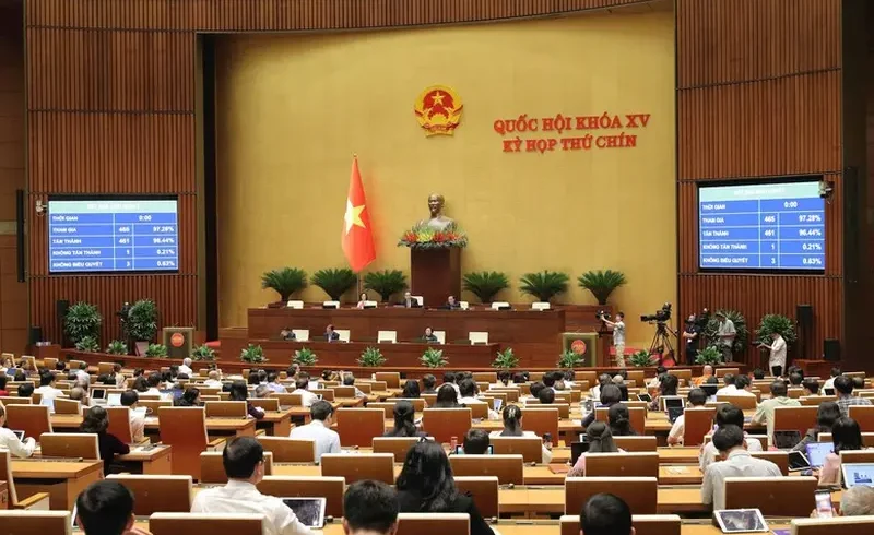 Với 461/465 đại biểu Quốc hội có mặt tham gia biểu quyết tán thành, Quốc hội đã chính thức thông qua Nghị quyết về sắp xếp đơn vị hành chính cấp tỉnh năm 2025. Nghị quyết có hiệu lực thi hành từ ngày được thông qua.