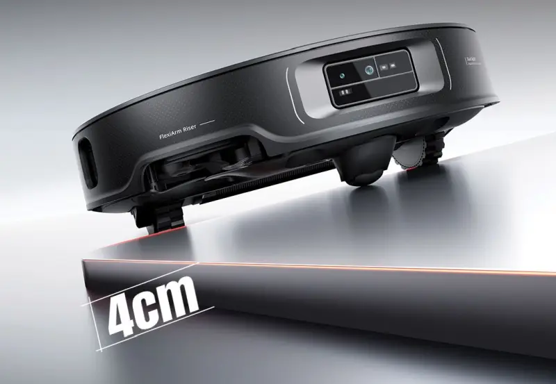 Dù tích hợp cánh tay cơ học, Roborock Saros Z70 vẫn sở hữu thiết kế mỏng, dày gần 8 cm, nên có thể dễ dàng di chuyển vào những khu vực khó tiếp cận như gầm giường, ghế sofa hay nội thất gầm thấp, tối ưu hóa khả năng làm sạch ở mọi không gian.