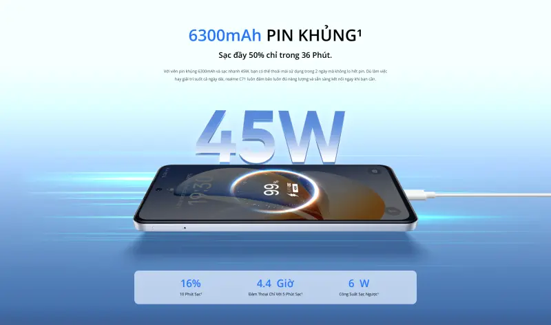 Không chỉ “Sạc nhanh, dùng bền”, realme C71 còn gây ấn tượng bởi mặt lưng với thiết kế lông vũ, được lấy cảm hứng từ độ mỏng nhẹ và tinh xảo của những chiếc lông vũ màu sắc. Chiếc điện thoại được hoàn thiện với thiết kế siêu nhẹ nhàng dễ cầm nắm, phù hợp với lối sống năng động hiện đại của giới trẻ.