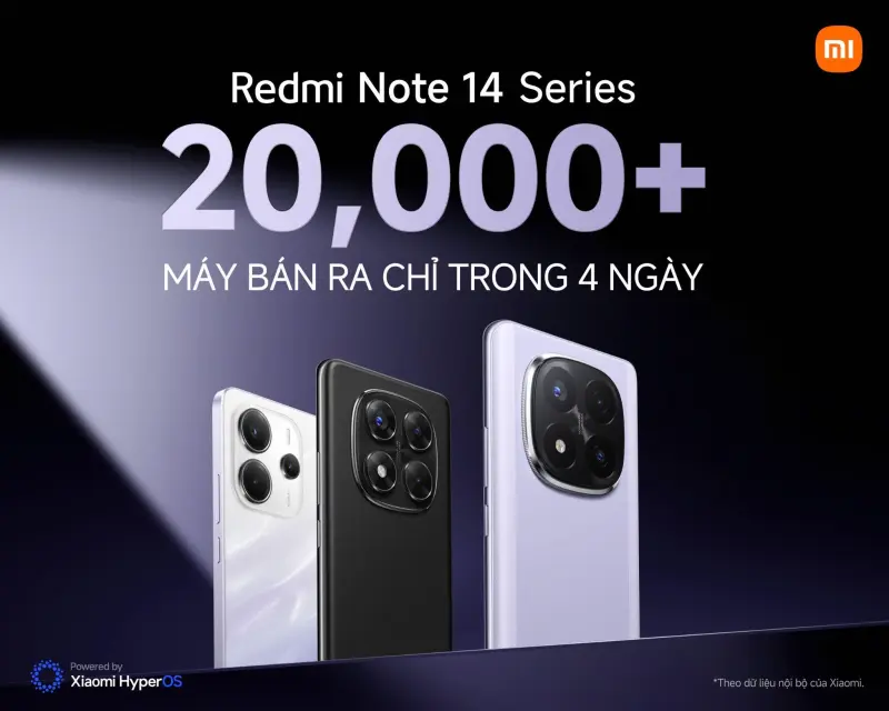 Chính thức ra mắt tại thị trường Việt Nam vào ngày 10/1/2025, dòng smartphone Redmi Note 14 Series của hãng Xiaomi đã tạo nên “cơn sốt” với doanh số ấn tượng, vượt mốc 20.000 đơn hàng chỉ sau 4 ngày mở bán. Trung bình, mỗi ngày dòng sản phẩm này ghi nhận 5.000 đơn hàng bán ra. Tức là cứ mỗi phút, có trên 3 khách hàng chọn sở hữu Redmi Note 14 Series cho dịp năm mới.