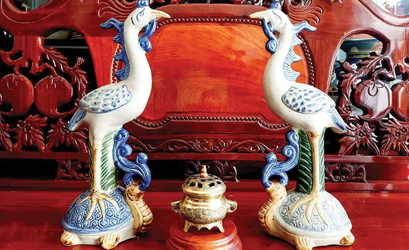 - Hình bìa: Cặp chân đèn bằng gốm thể hiện hình ảnh rùa cõng hạc. Ảnh: DUY KHÔI