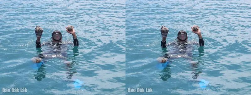 “Trời nắng chói chang nhưng đi săn nhum phải lặn sâu xuống, nước lạnh buốt nên da tím tái, lên tới bờ mà hai hàm răng còn đánh vào nhau lộp cộp. Cả ngày ngụp lặn, tối về cơ thể mỏi nhừ nhưng hôm sau vẫn dậy sớm để đi tiếp”, ngư dân Bi cho hay.