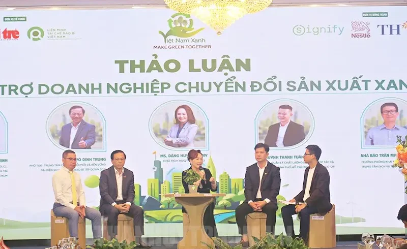 Sau các tham luận, phần thảo luận mở xoay quanh chủ đề: “Hỗ trợ doanh nghiệp chuyển đổi sản xuất xanh” với sự tham gia chia sẻ từ các diễn giả là chuyên gia, đại diện các doanh nghiệp tiêu biểu ở đa dạng các lĩnh vực. Các diễn giả cùng thảo luận và đưa ra các giải pháp thiết thực giúp doanh nghiệp chuyển đổi sản xuất xanh hiệu quả, đảm bảo được bài toán lợi nhuận. Đồng thời nâng cao nhận thức của doanh nghiệp về tầm quan trọng của tăng trưởng xanh; Đề xuất các chính sách về tài chính và tiêu chuẩn rõ ràng để hỗ trợ doanh nghiệp trong quá trình chuyển đổi dần sang sản xuất xanh, tăng lợi thế cạnh tranh của doanh nghiệp Việt trên trường quốc tế.