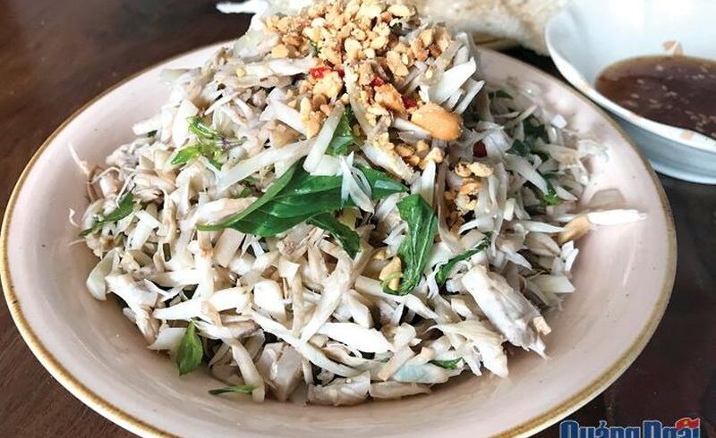 Ăn gỏi mít non không thể thiếu bánh tráng nướng cùng chén nước mắm chanh tỏi ớt. Bánh tráng giòn rụm, mít non ngọt bùi, các vị cay, mặn, ngọt hòa lẫn vào nhau làm cho món ăn thêm phần đậm đà và thi vị. Mải chơi, lũ trẻ con đói bụng. Lúc đấy bà gọi vào ăn mít trộn xúc bánh tráng thì lũ trẻ chúng tôi mừng tíu tít. Gỏi mít non xúc bánh tráng, không thì có thể ăn kèm cơm thay cho một món rau.