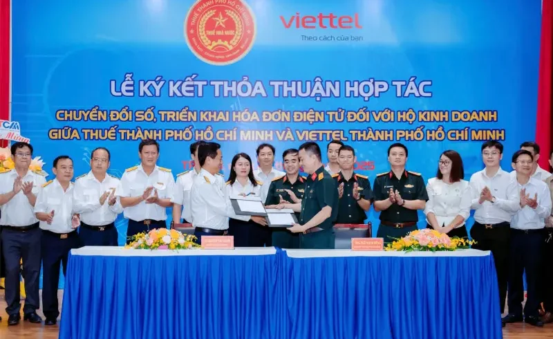 Ngày 26/9/2025, tại trụ sở Thuế TPHCM, Thuế TPHCM và Viettel TPHCM đã tổ chức Lễ ký kết thỏa thuận hợp tác phối hợp hướng dẫn chính sách thuế – Hỗ trợ hộ kinh doanh chuyển đổi số, đánh dấu cột mốc quan trọng trong tiến trình triển khai hóa đơn điện tử cho toàn bộ hộ kinh doanh trên địa bàn TPHCM.