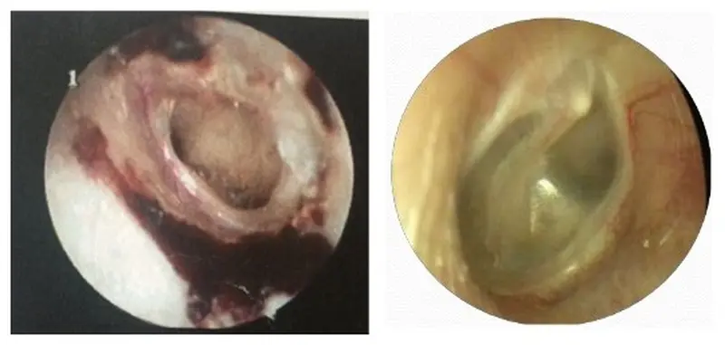 Các bác sĩ chuyên khoa Tai mũi họng xác định: bệnh nhân bị rách 2/3 màng nhĩ, rách rộng trung tâm tai trái, thính lực giảm, ù tai nhiều, nghe kém bên tai tổn thương. Vết rách không tự liền được và bệnh nhân được phẫu thuật vá màng nhĩ.
