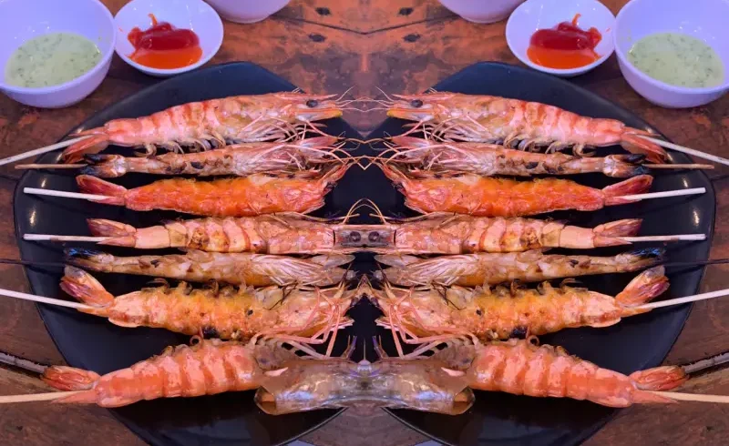 Tôm nướng muối ớt có vị mặn, ngọt hài hòa, thêm chút chua, cay của muối ớt xanh, muối tiêu chanh rất hấp dẫn.