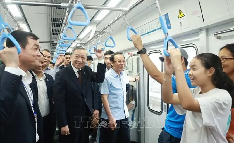 Trải nghiệm hành trình từ ga Bến Thành đến ga Tân Cảng, Tổng Bí thư Tô Lâm đã gặp gỡ, trò chuyện thân mật với nhân dân trên tàu, được người dân phấn khởi chia sẻ cảm nhận khi được đi trên phương tiện giao thông công cộng hiện đại, rút ngắn rất nhiều thời gian di chuyển trong nội thành, đáp ứng nhu cầu đi lại hàng ngày rất lớn của người dân và góp phần nâng cao chất lượng sống.